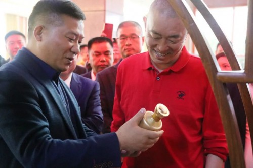 史玉柱先生一行首先到達(dá)公司綜合樓,重點(diǎn)視察了一樓黃金醬酒展廳以及五樓辦公區(qū)。展廳內(nèi)陳列了黃金醬酒捌陳釀、拾陳釀、拾伍陳釀,以及“黃金”系列部分產(chǎn)品——黃金搭檔、黃金1號(hào)、黃金精釀、黃金禮賓、黃金夢(mèng)、黃金莊園、黃金原醬、黃金壇酒、黃金時(shí)代等,琳瑯滿目,引人入勝。參觀展廳的過(guò)程中,成云向史玉柱先生介紹了黃金醬酒的產(chǎn)品結(jié)構(gòu)策略及未來(lái)發(fā)展規(guī)劃。他指出,在短短六個(gè)月的時(shí)間里,黃金酒業(yè)股份已經(jīng)與全國(guó)四十余名品牌運(yùn)營(yíng)商聯(lián)合打造了百余款黃金系列產(chǎn)品,其中部分系列已經(jīng)上市并且很暢銷(xiāo),另外還有幾十款新品正在生產(chǎn)中。史玉柱先生對(duì)公司在產(chǎn)品層面的系統(tǒng)布局和長(zhǎng)遠(yuǎn)規(guī)劃表示贊許。